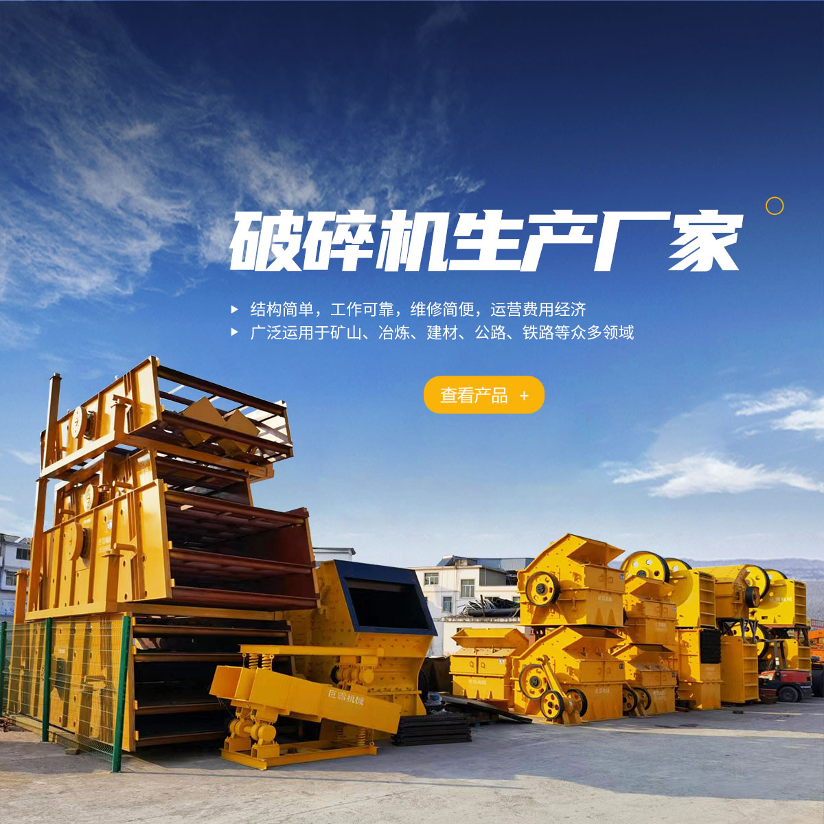 主要產品有:移動式破碎站、礦用制砂機、破碎機、礦砂設備、混凝土攪拌站等產品